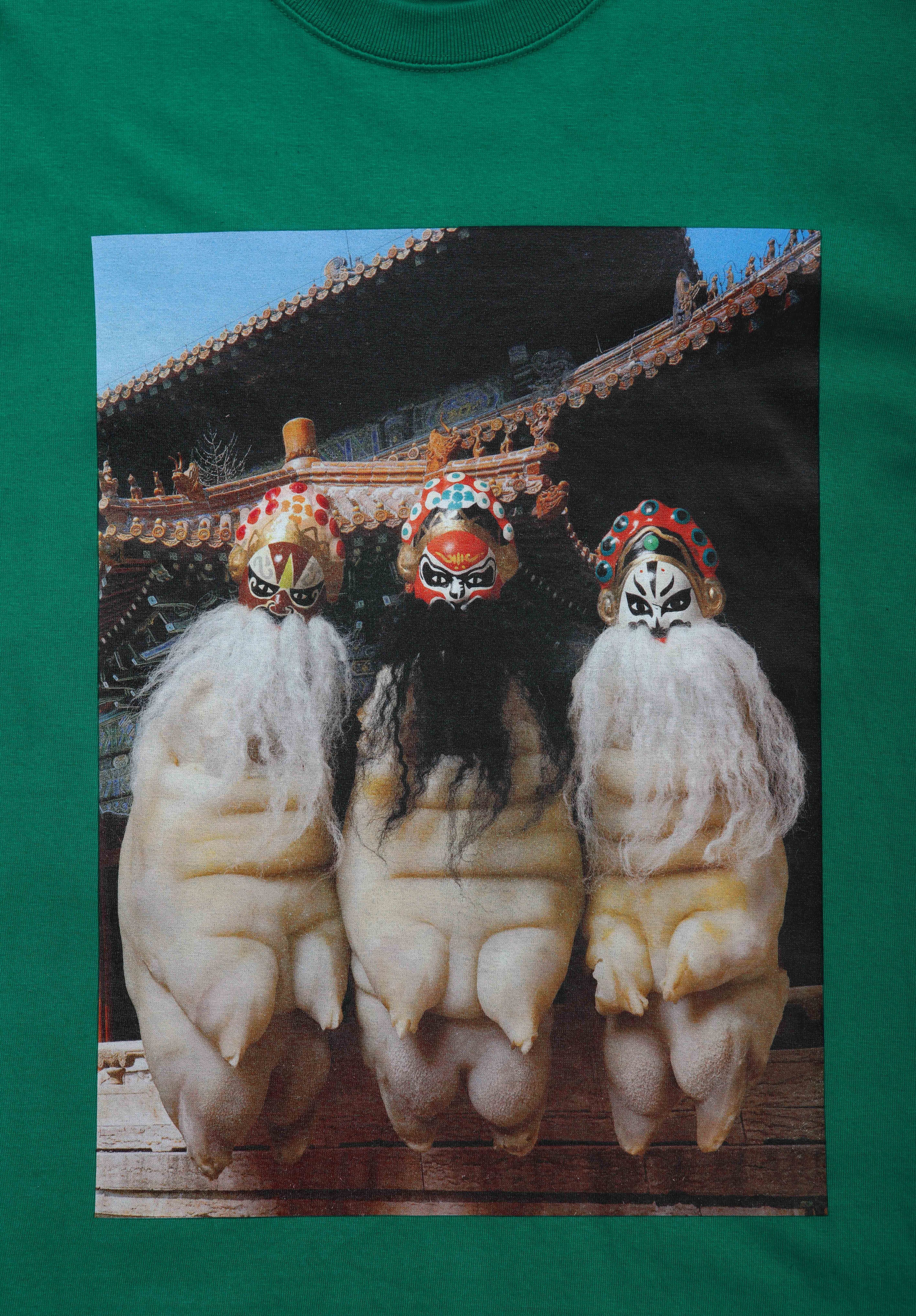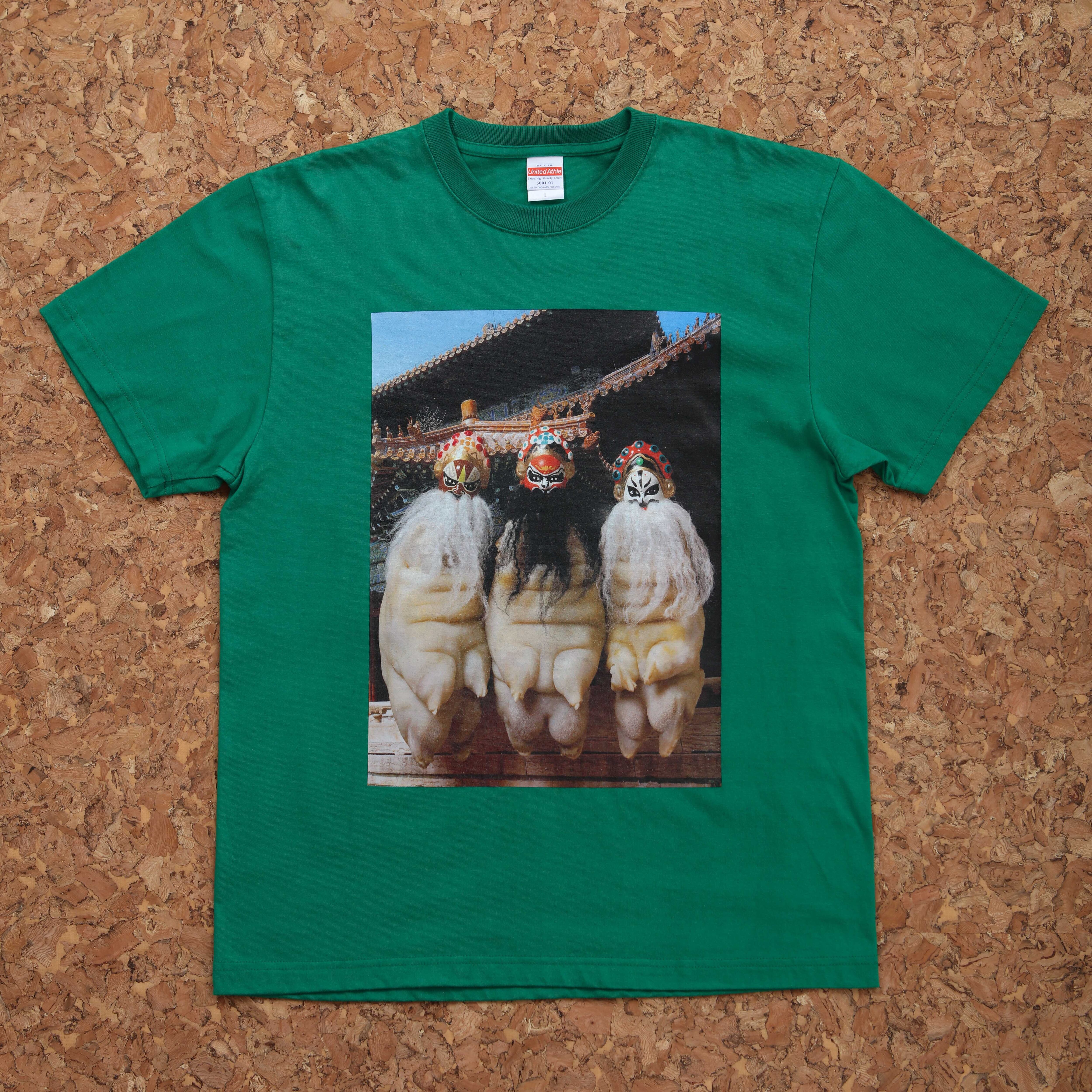 豚足京劇面 Tシャツ グリーン